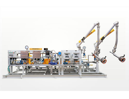 油品定量裝車橇裝組是指將每一個裝車鶴位內的儀表和設備集成在一個專用的框架結構內,儀表和設備包括裝車鶴管、流量計、防溢油靜電報警控制器、壓力變送器、裝車流量控制閥、緊急切斷閥,裝車泵、批量控制器等, 只預留工藝連接口和控制電源和通訊接口,這個整體集成部分稱為裝車橇。與傳統的裝車控制系統就地組裝比較,裝車橇可以節省現場設計和現場施工量,縮短項目工期,提高裝車控制系統的質量。